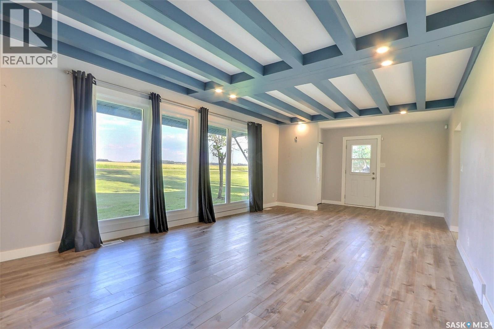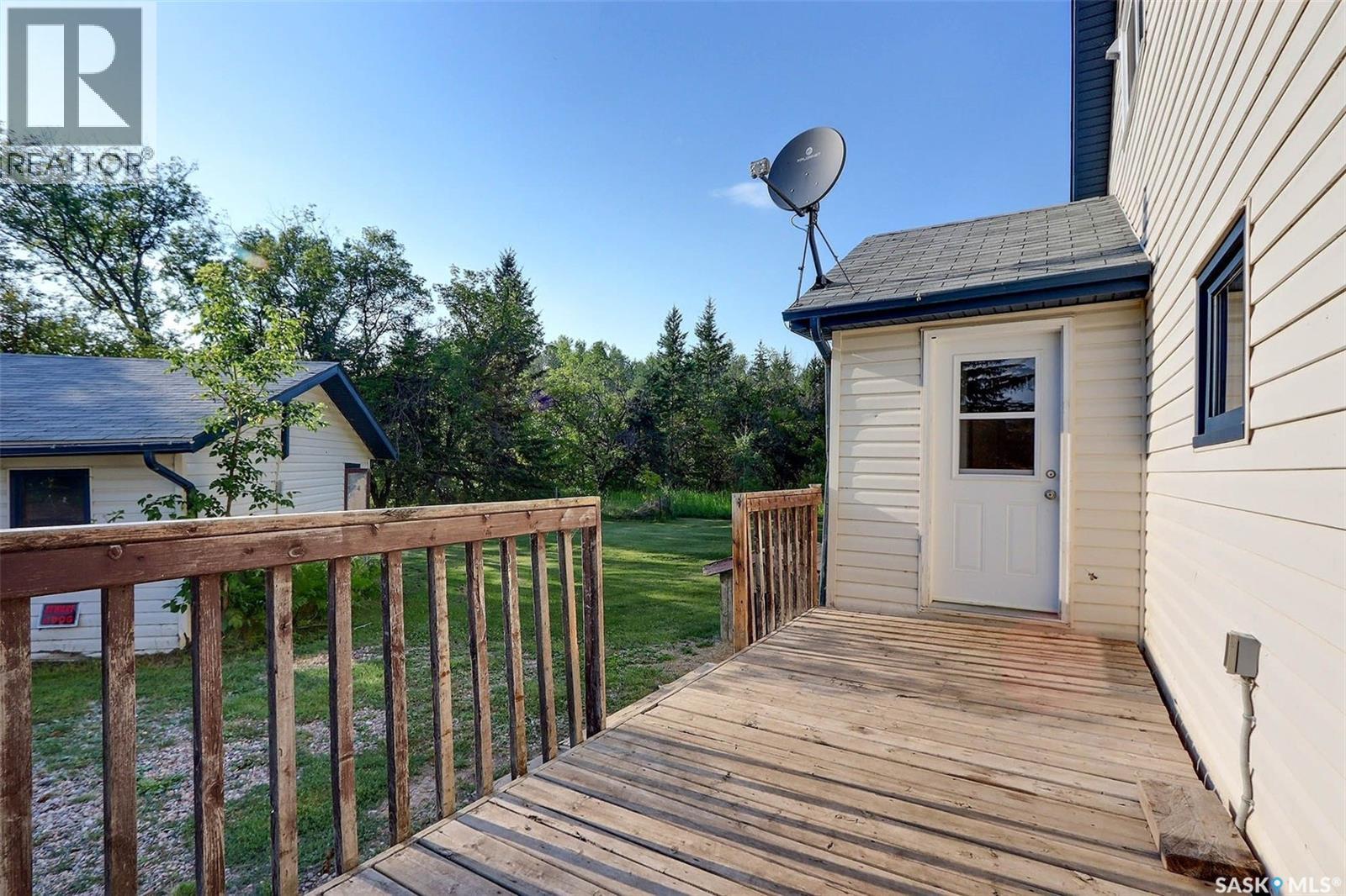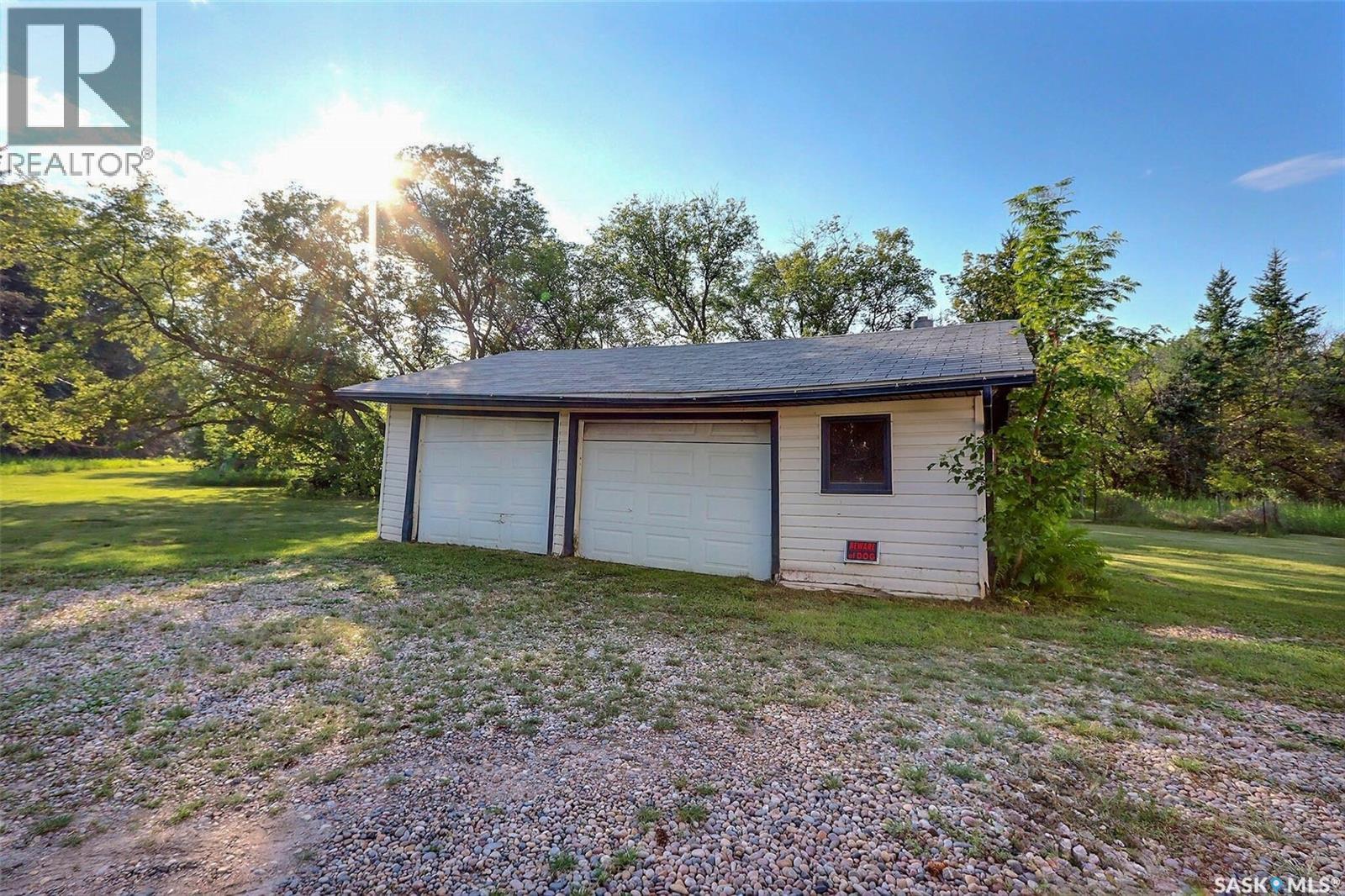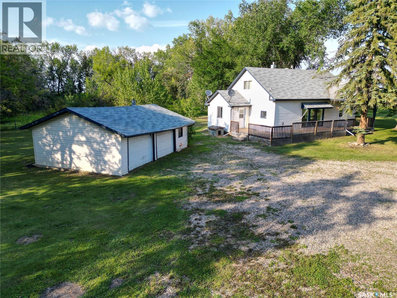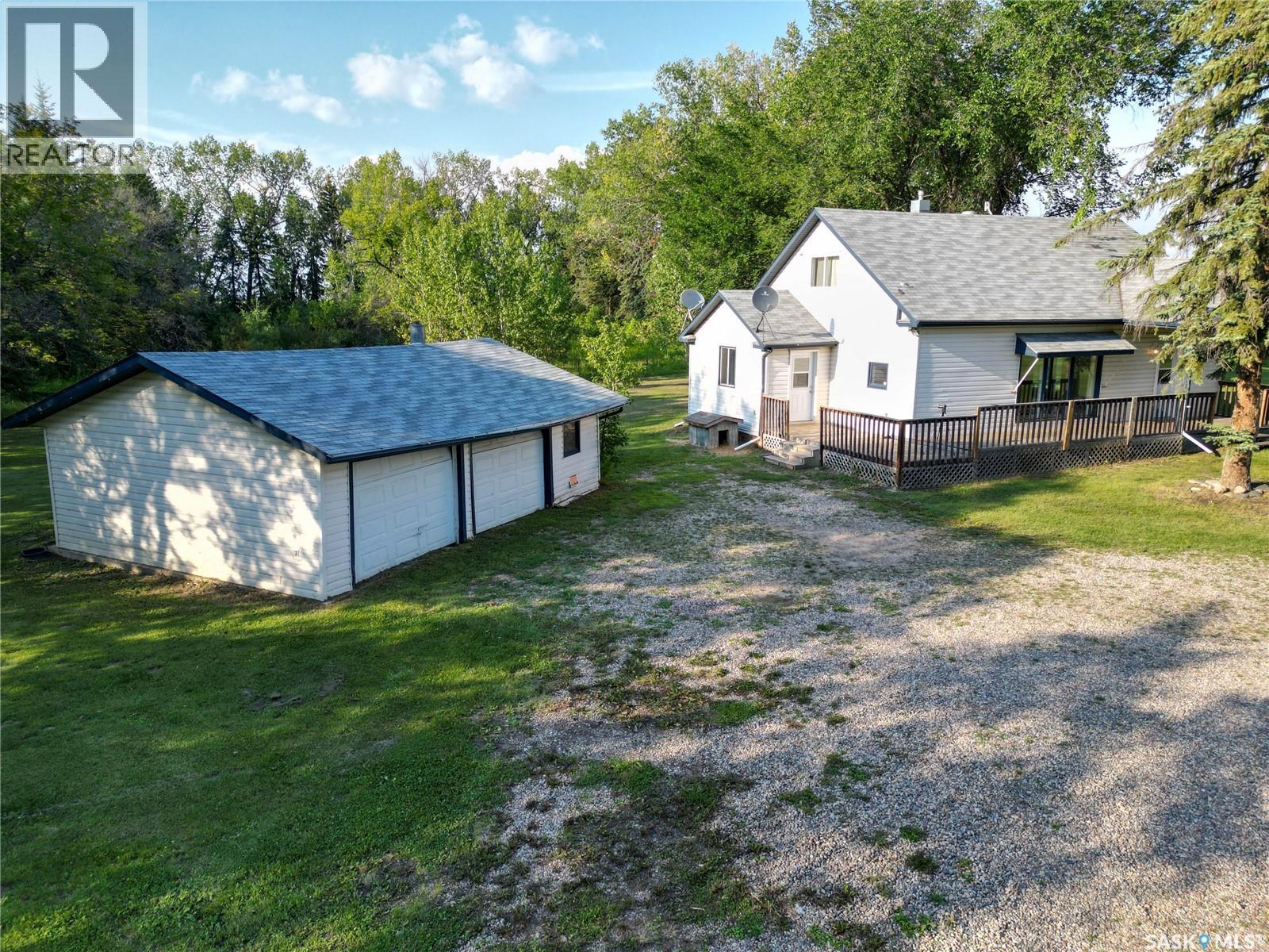 Charming 4 bed, 2 bath, 1533 sq/ft acreage on 14.81 acres of serene land. This property hosts a spacious main floor with linoleum flooring, a large living room with beams and expansive windows showcasing the beautiful surroundings, a u-shaped kitchen, and a dining room flooded with natural light. The main floor also features an updated 4-piece bathroom, main floor laundry, and a spacious foyer perfect for a mudroom. Upstairs, find 3 bedrooms including a primary with a 2-piece ensuite and walk-in closet. The unfinished basement offers ample storage and potential for a future rec room. Moving outside, the 26 X 30 barn with a concrete floor and 22 X 28 detached garage provide all the space you need. Enjoy the tranquility of the treed lot, shelter belt for privacy and 170' depth well. Looking for even more space? This property has the option to lease an additional 37 acres with a perimeter fence. Call for more information or to book your showing! (id:4069)