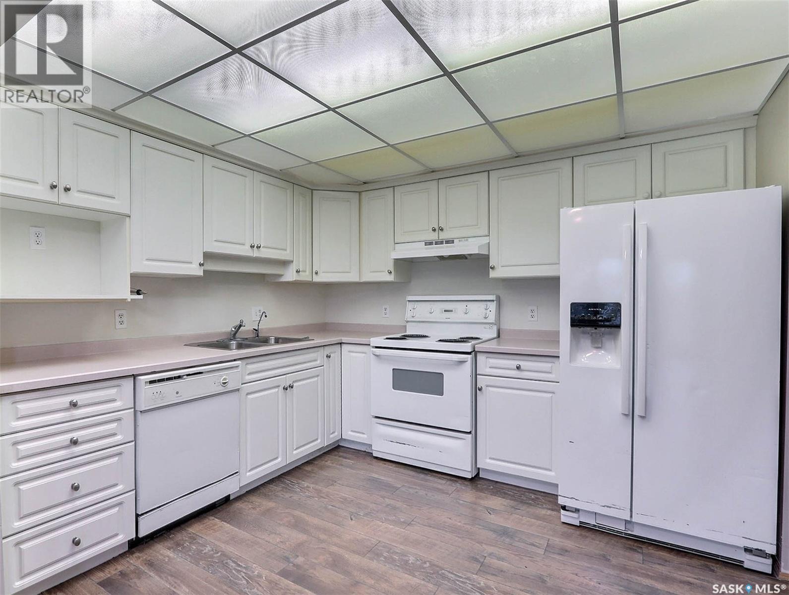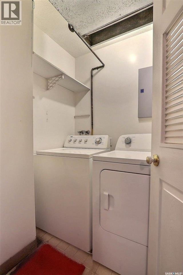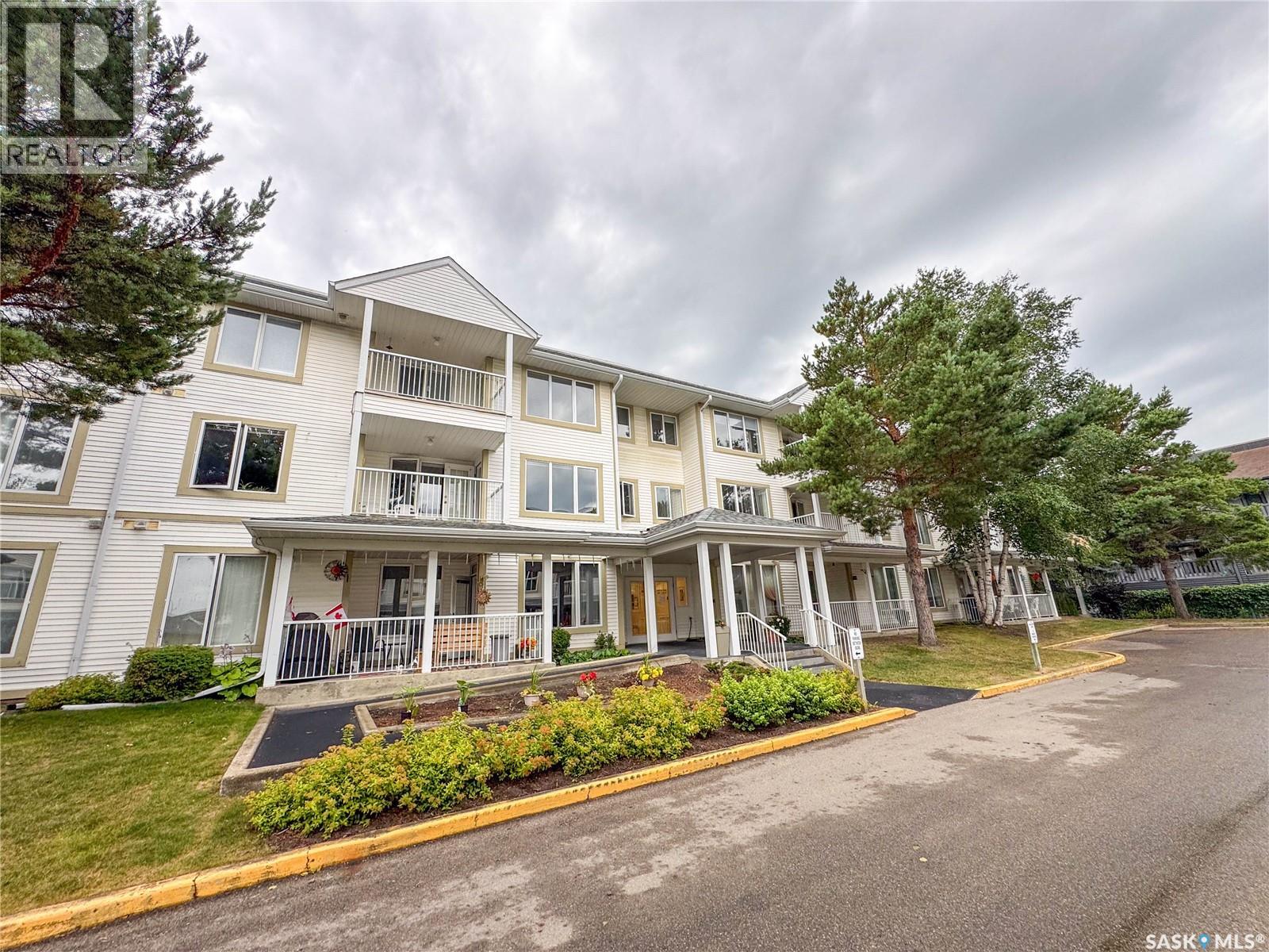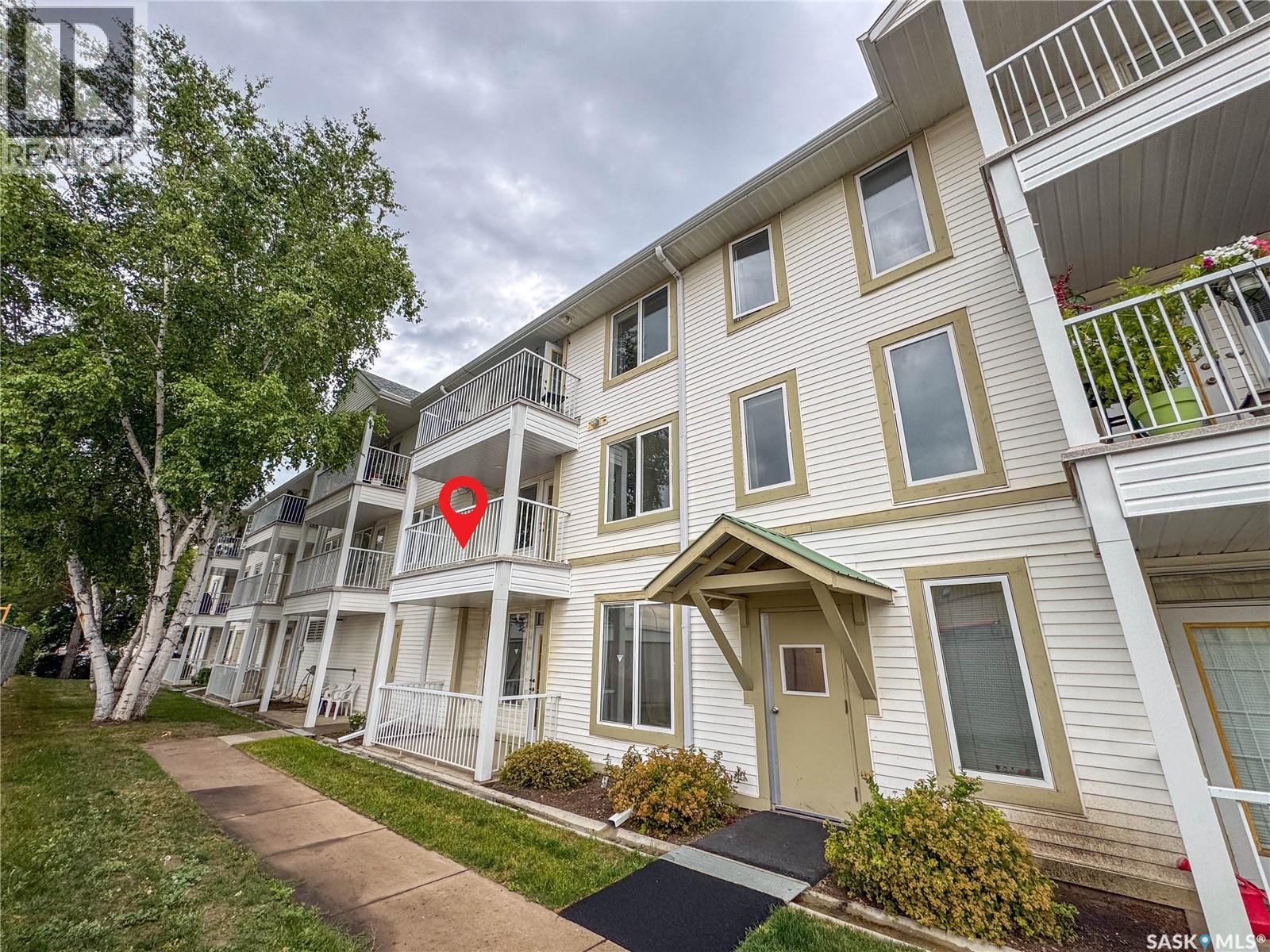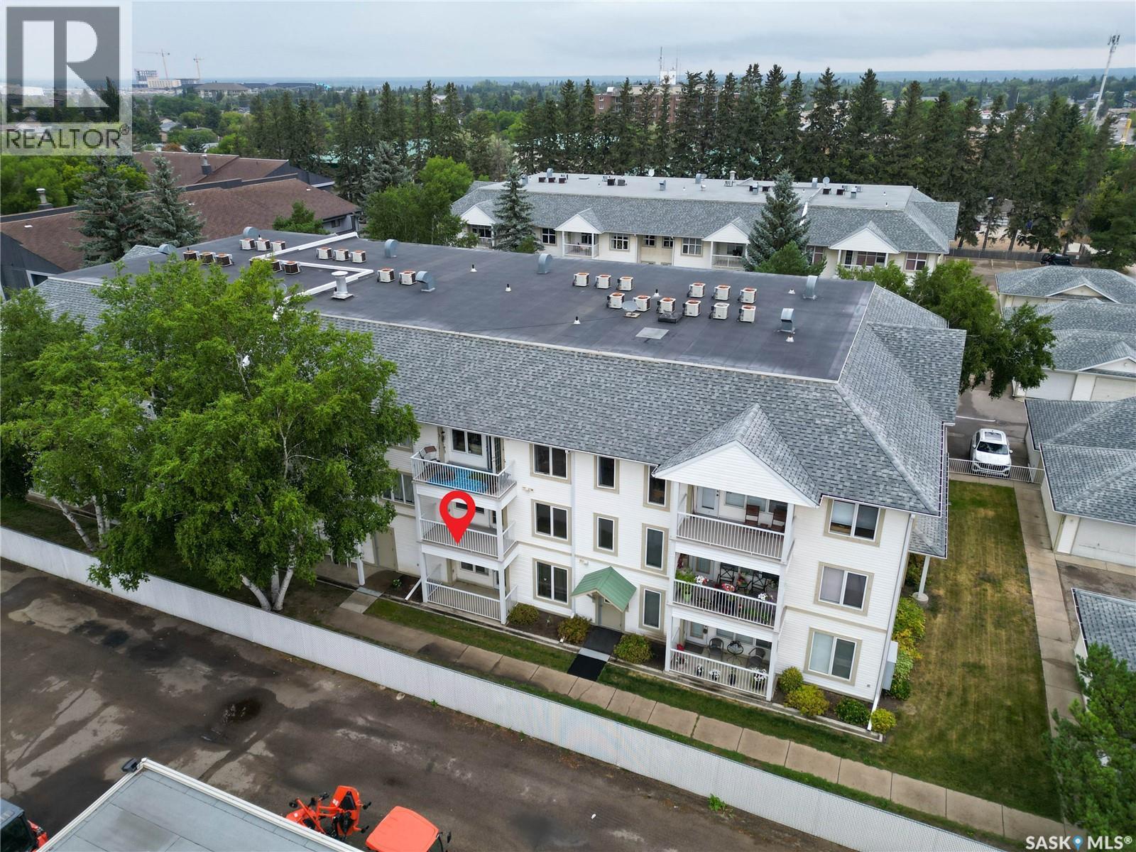 South facing 2nd floor unit in The Mackenzie condominium complex. This bright 947 square foot condo features a large primary suite with 2 piece bathroom, a second bedroom and bedroom, white kitchen with arborite counters, dining area, and a cozy living room leading to a south facing covered balcony. In-suite laundry adds convenience, while central air conditioning ensures comfort year-round. Residents enjoy access to an elevator, community room, and designated main floor storage space. With nearby amenities and an exclusive parking stall, this affordable unit in a desirable South Hill location offers both comfort and convenience. (id:4069)