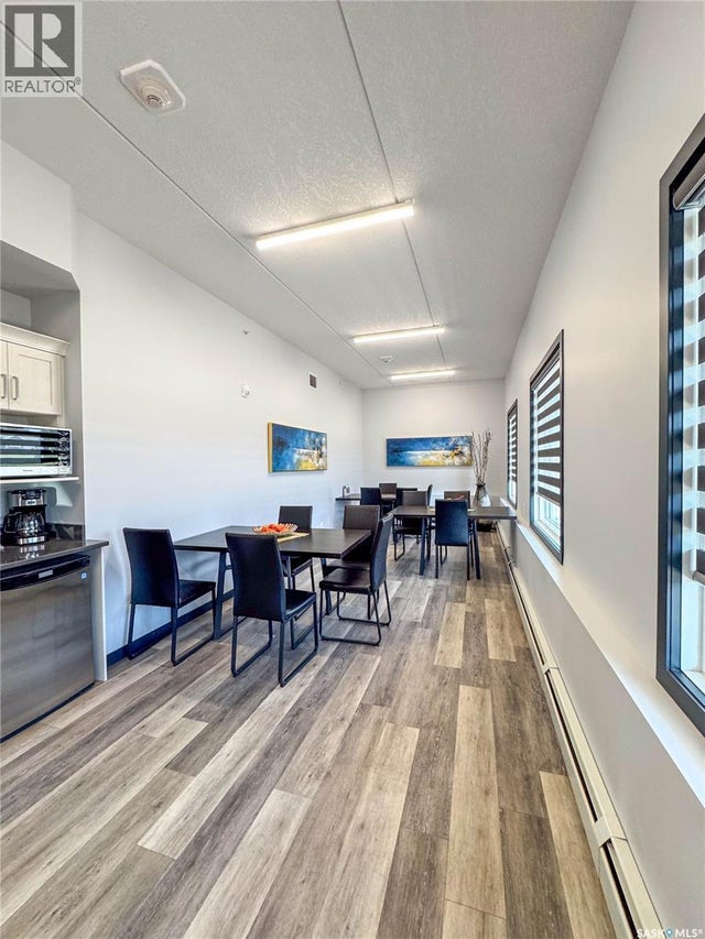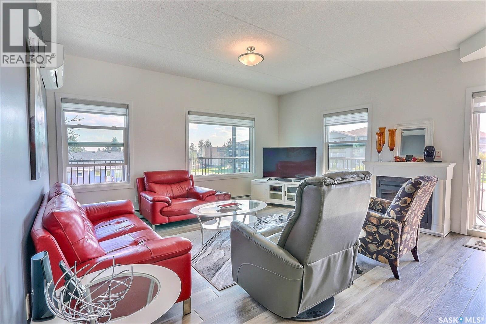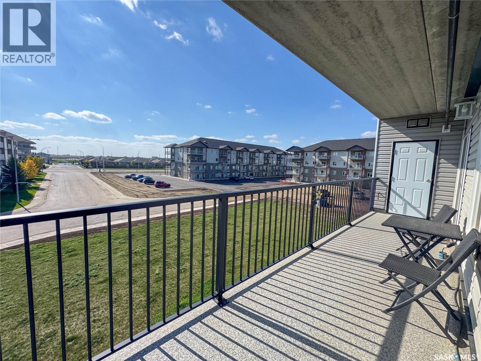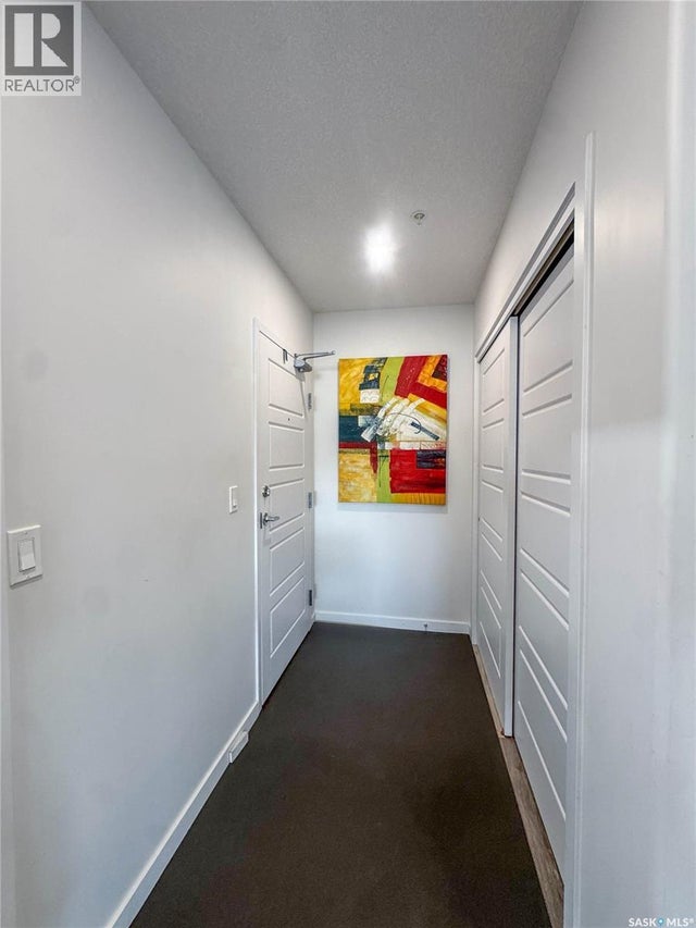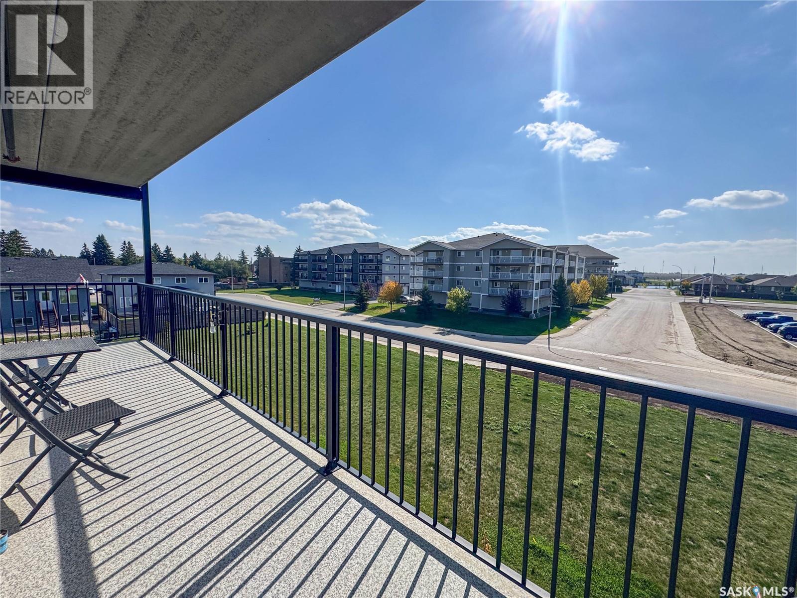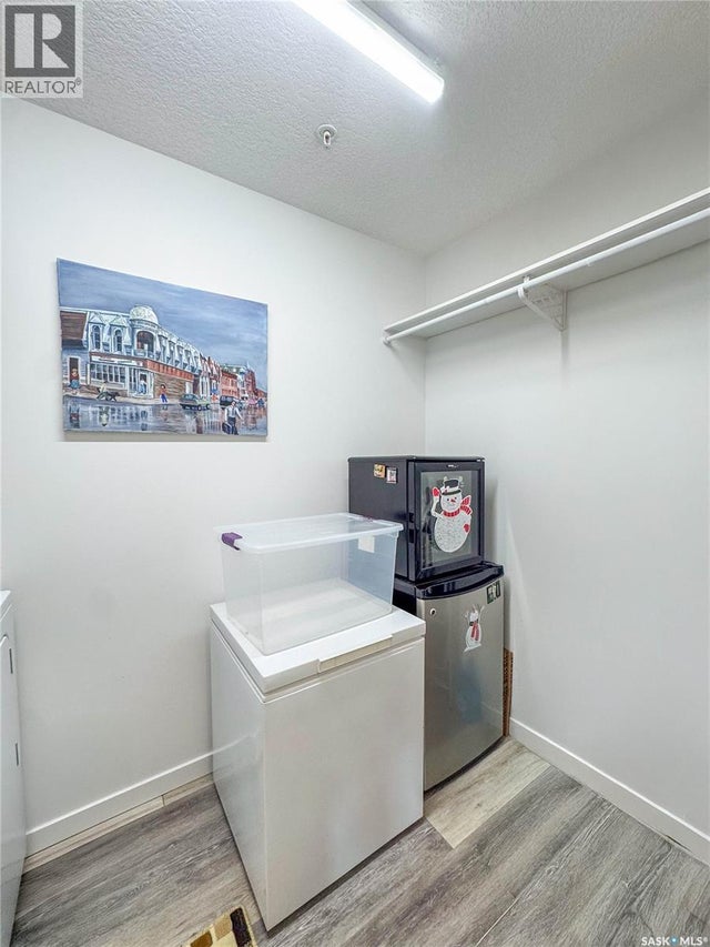Stunning 2 bedroom, 2 bathroom condo offering 1,174 sq ft of luxury and low-maintenance living. This open-concept home features vinyl plank flooring and quartz countertops throughout, a bright white kitchen with stainless steel appliances, a 6’ island, and expansive windows that flood the space with natural light. Soaring 9’ ceilings enhance the spacious feel, while the southeast-facing covered wrap-around balcony includes two electrified and insulated storage rooms plus a natural gas BBQ line. The primary suite boasts its own bathroom, and the in-suite laundry provides additional storage space for convenience. Building amenities include an elevator, heated parking garage space, workshop, common room with a kitchenette, and an exercise area. Ideally located near the Alfred Jenkins Field House, hospital, and many other amenities, this condo combines elegance, comfort, and ease of living. (id:4069)