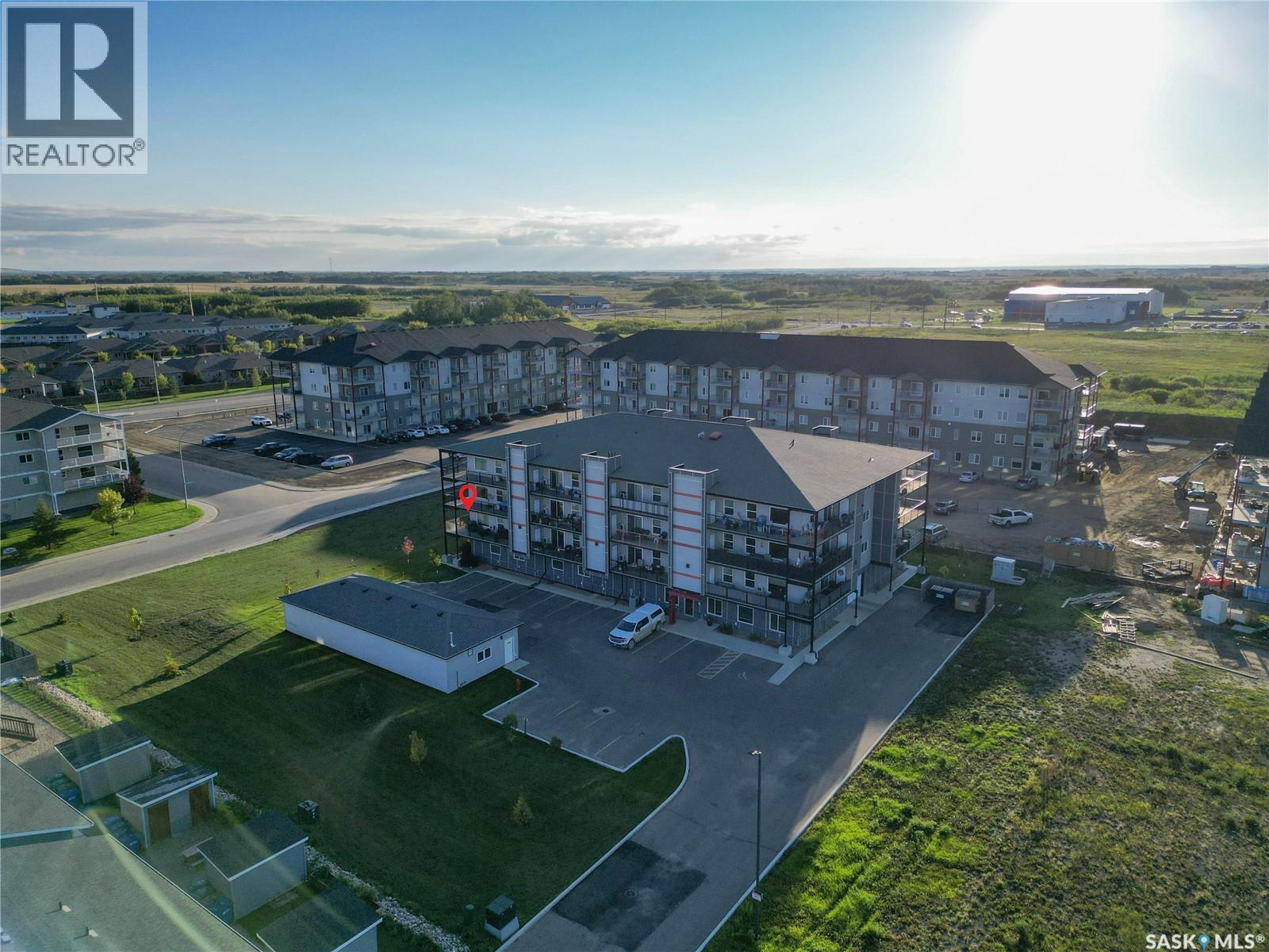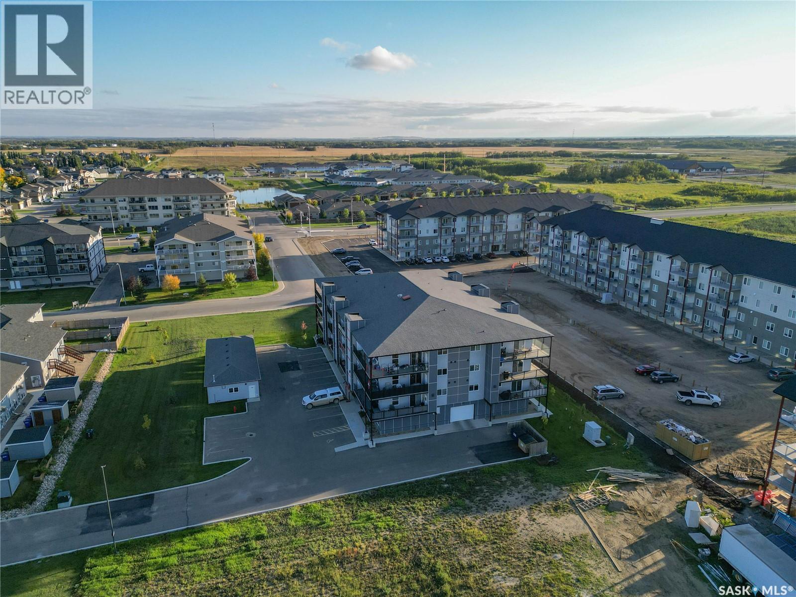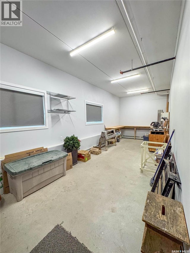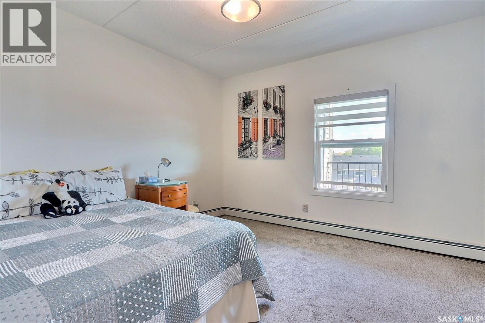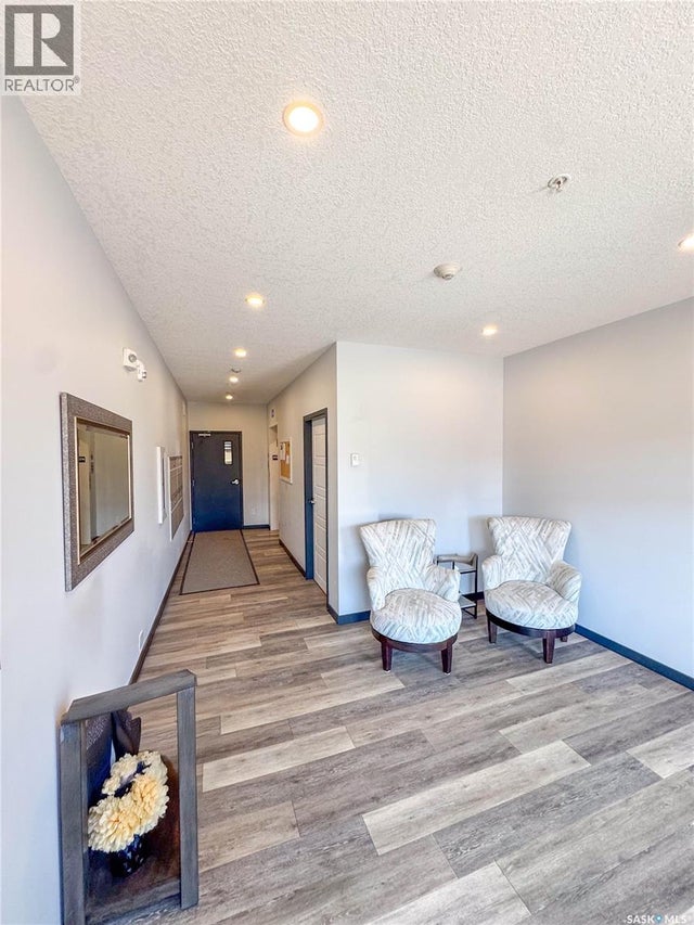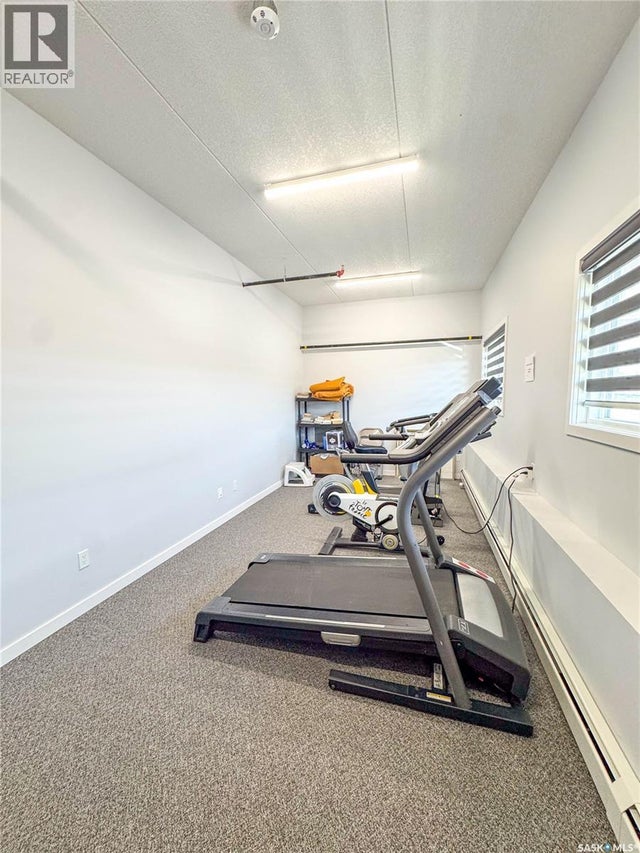 Stunning 2 bedroom, 2 bathroom condo offering 1,174 sq ft of luxury and low-maintenance living. This open-concept home features vinyl plank flooring and quartz countertops throughout, a bright white kitchen with stainless steel appliances, a 6’ island, and expansive windows that flood the space with natural light. Soaring 9’ ceilings enhance the spacious feel, while the southeast-facing covered wrap-around balcony includes two electrified and insulated storage rooms plus a natural gas BBQ line. The primary suite boasts its own bathroom, and the in-suite laundry provides additional storage space for convenience. Building amenities include an elevator, heated parking garage space, workshop, common room with a kitchenette, and an exercise area. Ideally located near the Alfred Jenkins Field House, hospital, and many other amenities, this condo combines elegance, comfort, and ease of living. (id:4069)
