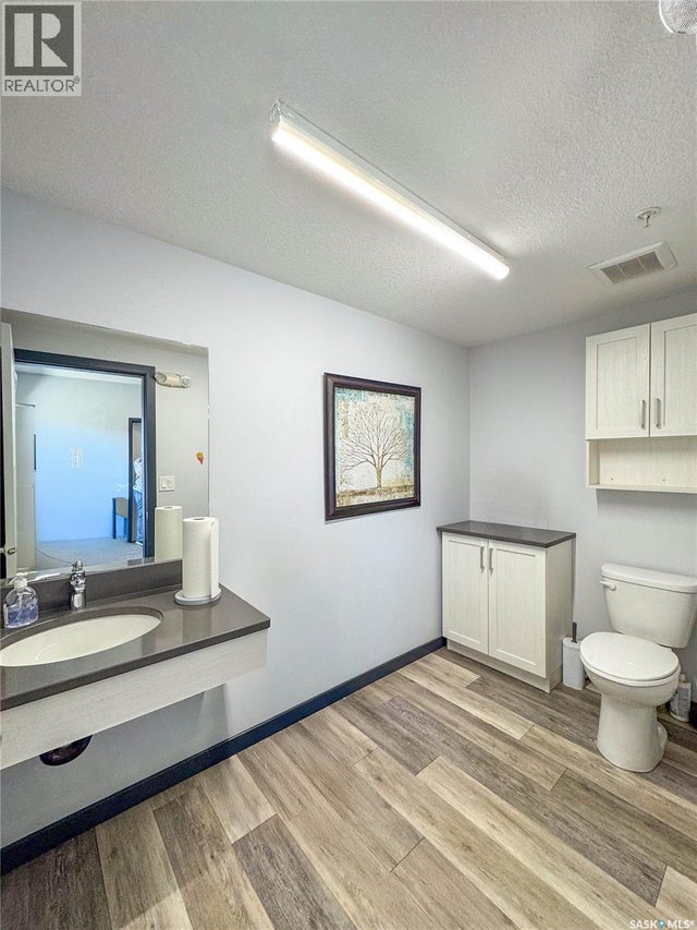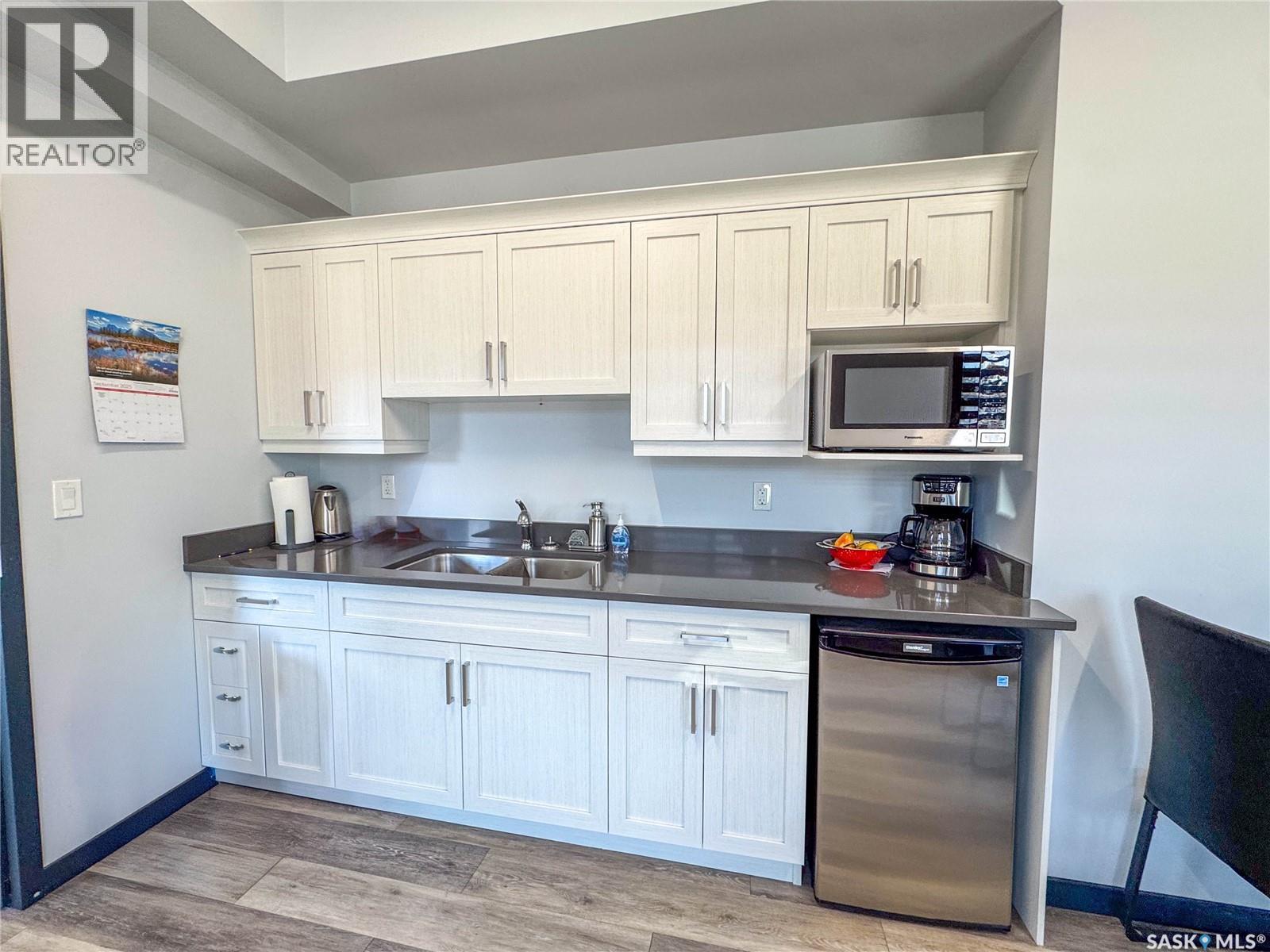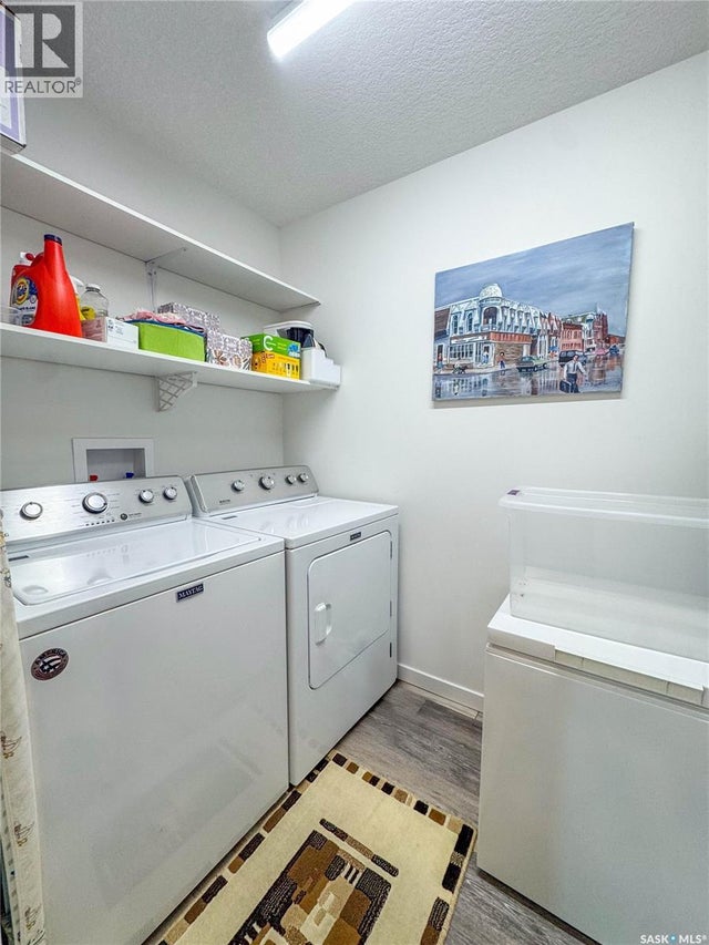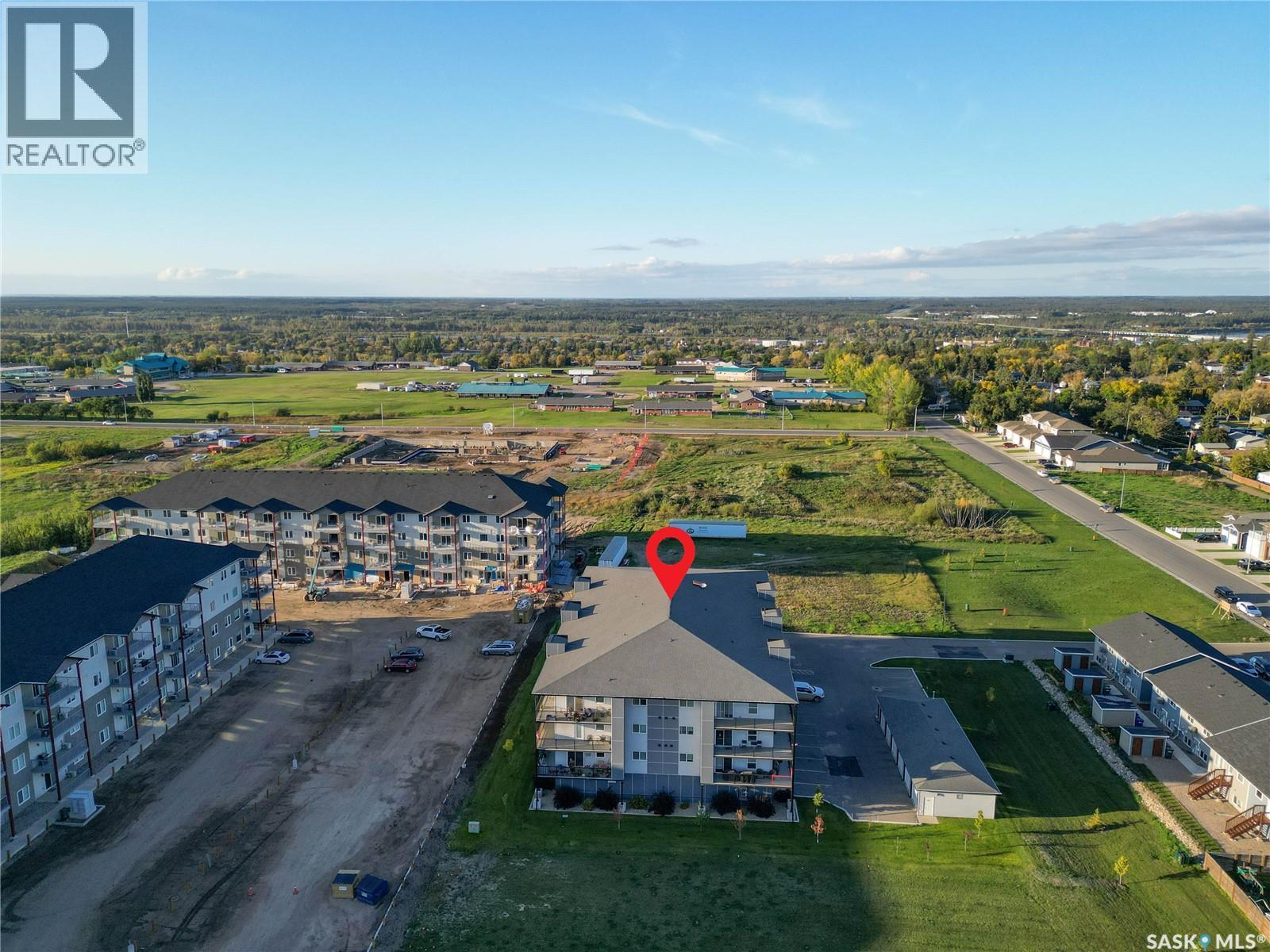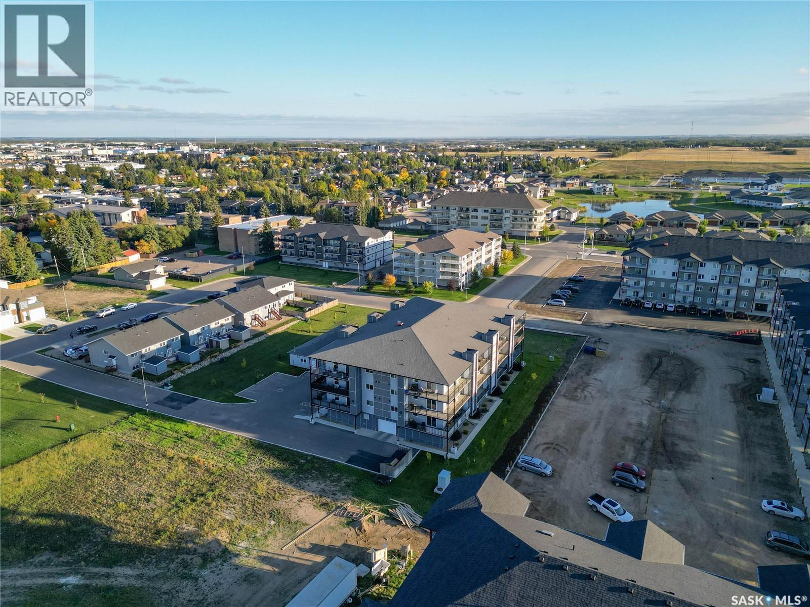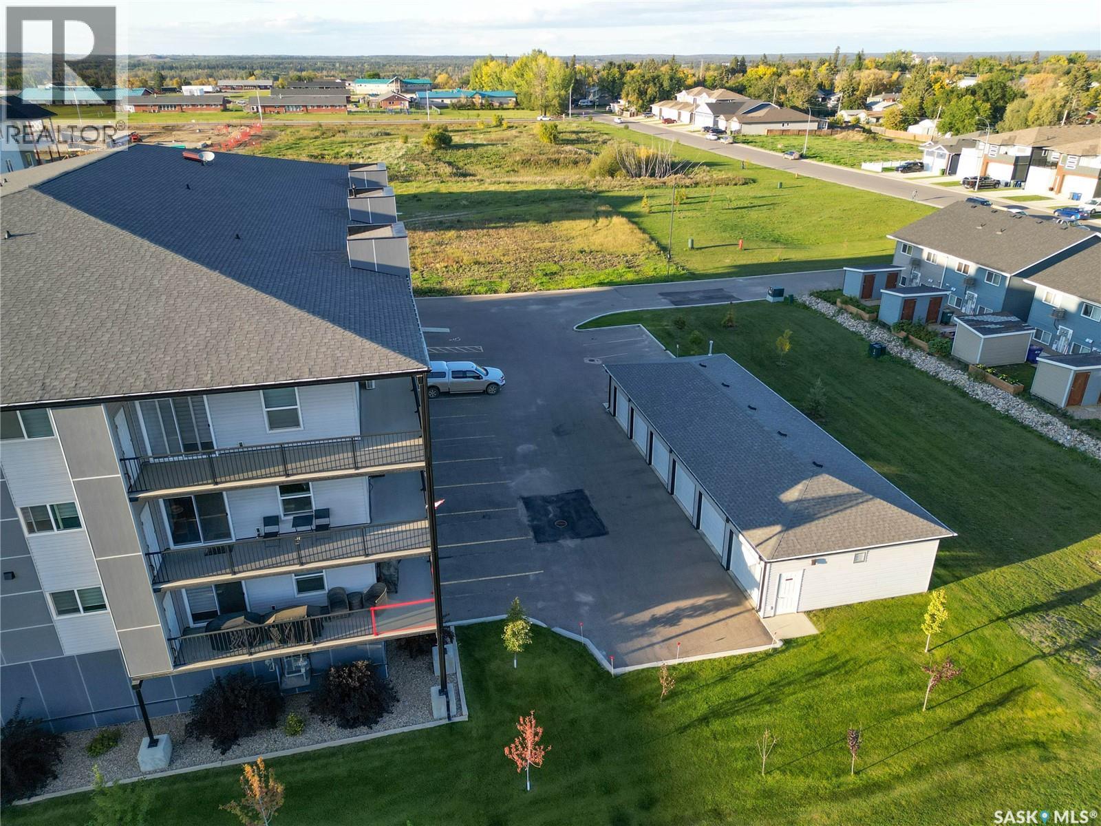 Stunning 2 bedroom, 2 bathroom condo offering 1,174 sq ft of luxury and low-maintenance living. This open-concept home features vinyl plank flooring and quartz countertops throughout, a bright white kitchen with stainless steel appliances, a 6’ island, and expansive windows that flood the space with natural light. Soaring 9’ ceilings enhance the spacious feel, while the southeast-facing covered wrap-around balcony includes two electrified and insulated storage rooms plus a natural gas BBQ line. The primary suite boasts its own bathroom, and the in-suite laundry provides additional storage space for convenience. Building amenities include an elevator, heated parking garage space, workshop, common room with a kitchenette, and an exercise area. Ideally located near the Alfred Jenkins Field House, hospital, and many other amenities, this condo combines elegance, comfort, and ease of living. (id:4069)