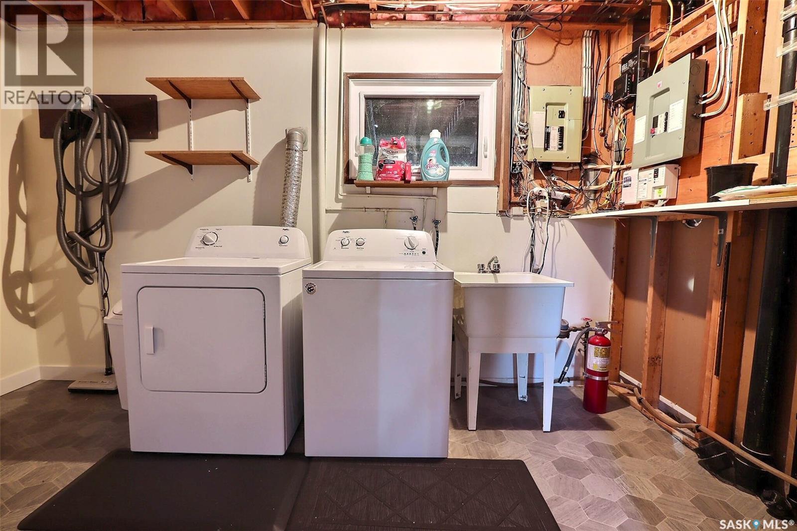Welcome to this well-maintained 4 bedroom, 2 bathroom bi-level in desirable Crescent Acres — perfectly situated within walking distance to two excellent elementary schools and close to parks, walking paths, and amenities. Built in 1984 and offering 927 sq/ft on the main, this home features a bright and spacious living room with a large window and gleaming laminate flooring. The dining area and white U-shaped kitchen flow seamlessly together, complete with stainless steel appliances and a new patio door leading to the tiered deck — ideal for entertaining or relaxing. The main level also includes two generous bedrooms and a full bathroom. The fully developed basement with vinyl plank flooring provides a large, bright rec room, two additional bedrooms, a 3-piece bathroom, and a convenient laundry/utility room with a working sink. Outside, enjoy a private, fenced yard surrounded by mature trees, a garden area, a firepit and a storage shed. The double detached heated garage and rubber/asphalt driveway provide ample parking. Recent updates include shingles, windows, trim, paint and so much more — making this a truly turn-key home. Additional features include central air conditioning, central vac roughed-in, and large windows throughout for plenty of natural light. An excellent home in a family-friendly neighbourhood — move in and enjoy Crescent Acres living for under $350K! (id:4069)