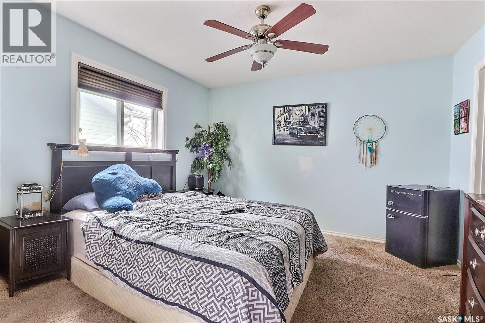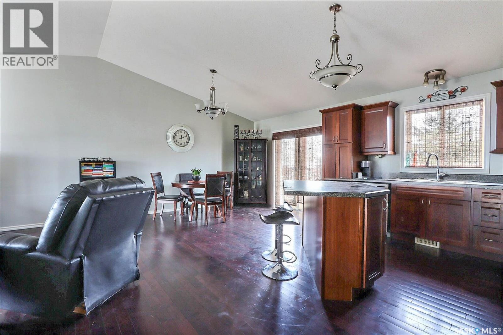 This spacious 1,245 sq/ft 5 bedroom bi-level, built in 2008, offers a fantastic layout and great potential. Located in East Flat across from St. John Community School and close to many amenities, this property makes for an ideal family home. The main floor features an open-concept design with vaulted ceilings, hardwood flooring, and a bright, spacious feel throughout. The kitchen offers plenty of dark cabinetry, an island with sink and bar seating, and patio doors leading to a large composite deck overlooking the fully fenced yard with a cozy fire pit area. There are 3 bedrooms and 2 bathrooms on the main level, including a primary suite with a walk-in closet and 3-piece ensuite. Downstairs, you’ll find a large rec room with plenty of windows, a den, and two additional bedrooms, plus a 4-piece bathroom — perfect for a growing family. Additional features include a 22x24 insulated double attached garage, arborite counters throughout, natural gas hot water heater (2022), central air, and an air-to-air exchanger. Set on a 54 x 130 lot, this home offers space and comfort - an excellent opportunity! (id:4069)